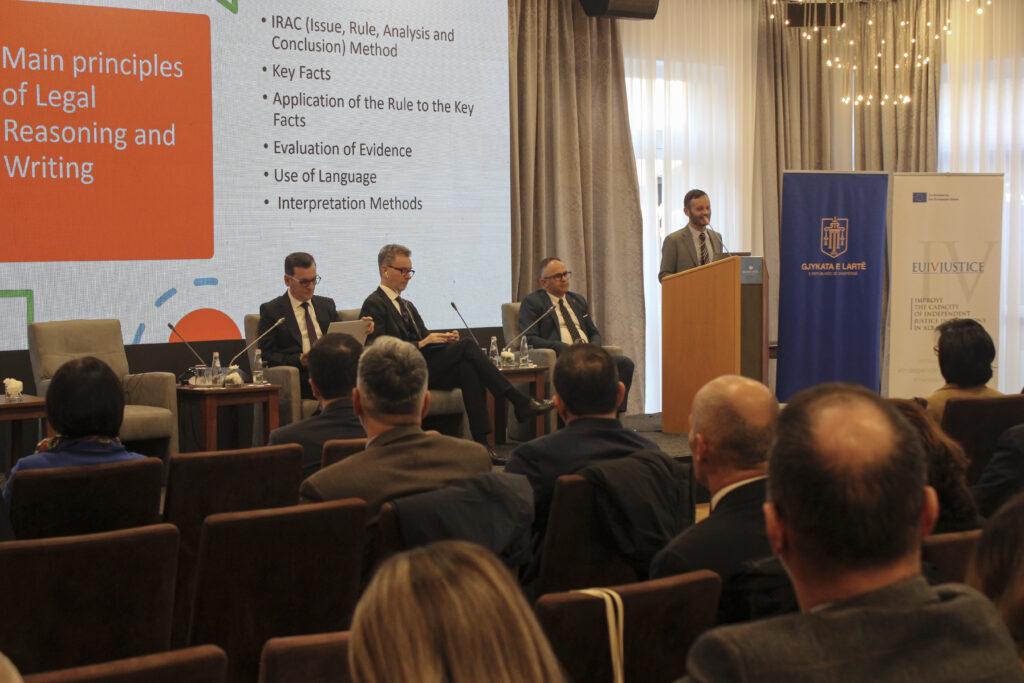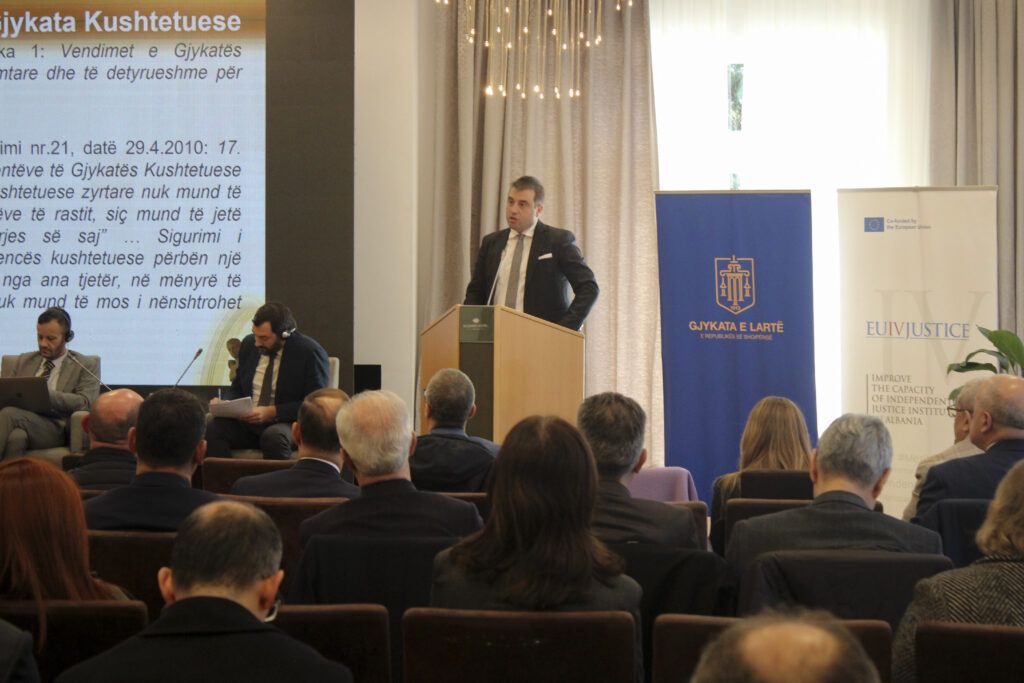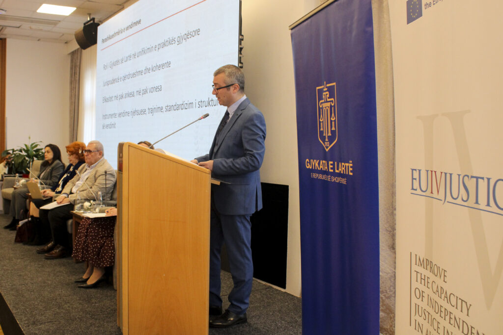 The High Court Chair Mr. Sokol Sadushi in his opening remarks underlined that the quality of justice is not measured solely by the speed of the trial or the reduction of the backlog of the case, but above all by the strength of reasoning, clarity, and the predictability of decision-making. The HC Chair also presented the integrated publication of jurisprudence, prepared by the EU4Justice Experts, which aims to make consolidated judicial practice more accessible for judges, prosecutors, lawyers, and the public. Mr. Sadushi closed the speech with a simple standard: the citizens should not have to ‘guess’ justice. They have the right to predict it. This is achieved only when the law is applied without unjustified deviations, is reasoned correctly, and is communicated clearly. The opposite of quality is not simply an error, it is arbitrariness. Let us replace arbitrariness with coherence and turn this into the hallmark of the reliability of justice.