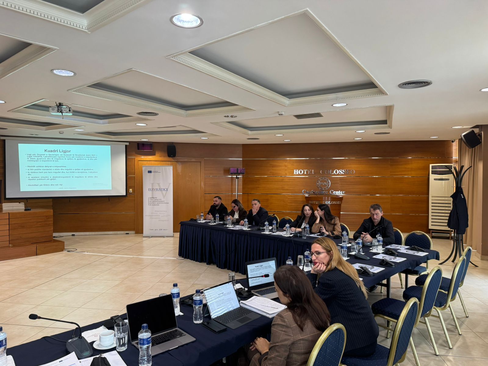 In her keynote presentation, Ms Boksi introduced the Guidelines on Ethical Dilemmas, developed with substantial support from EU4Justice. She outlined their objectives, structure and scope, emphasising their value as a practical tool to help magistrates identify, analyse and resolve ethically sensitive situations encountered in their daily work.